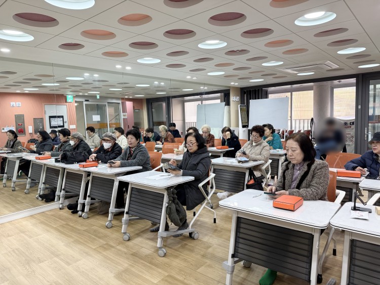 2026년 사회참여지원 평생교육활동 '스마트기기교육' 1회기 진행 페이지 정보 작성자 황혜진 작성일26-03-10 17:37 조회234회 댓글0건 관련링크 이전글 다음글 목록 본문 * 일시 : 2026년 3월 10일 (화), 15:30~16:30 * 대상 : 노인맞춤돌봄서비스 대상자 10명 * 장소 : 삼성시니어센터 2층 프로그램실 * 내용 : OT진행 및 스마트폰 기본 이해하기 댓글목록 등록된 댓글이 없습니다. 이전글 다음글 목록