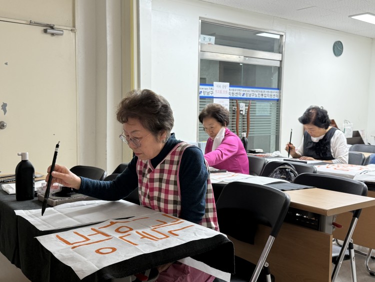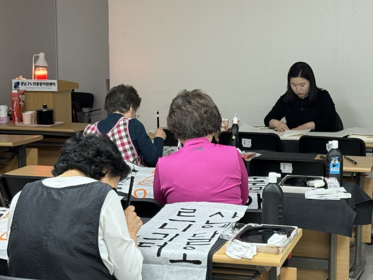 2026년 사회참여지원 평생교육활동 '서예교실' 4회기 진행 페이지 정보 작성자 황혜진 작성일26-03-25 13:20 조회9회 댓글0건 관련링크 다음글 목록 본문 * 일시 : 2026년 3월 25일 (수), 10:00~11:00 * 대상 : 노인맞춤돌봄서비스 대상자 4명 * 장소 : 강남구노인통합지원센터 지하 강당 * 내용 : 판본체·궁체 부분 연습하기① 댓글목록 등록된 댓글이 없습니다. 다음글 목록